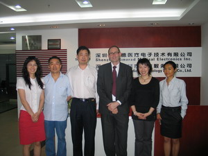 會(huì)議期間,前來公司參觀指導(dǎo)的嘉賓絡(luò)繹不絕,主要是重要客戶以及國內(nèi)外幾家磁共振生產(chǎn)商的代表。作為中國唯一一家生產(chǎn)磁共振配套的專業(yè)視頻、音頻產(chǎn)品的廠家,美德公司憑借精專的產(chǎn)品開發(fā)能力和優(yōu)質(zhì)的服務(wù),在業(yè)界享有良好的口碑,除在國內(nèi)擁有眾多的用戶外,還開始與國內(nèi)外磁共振廠商在產(chǎn)品配套和訂制特殊需求的產(chǎn)品方面有著良好的合作前景,借此博覽會(huì)在深舉辦期間,來公司參觀指導(dǎo),洽談合作。其中有西門子(中國)有限公司上海分公司的采購部總經(jīng)理Roland先生和助理謝山曉女士,西門子磁共振有限公司的技術(shù)專家們,北京協(xié)和醫(yī)院、河南省人民醫(yī)院、四川大學(xué)華西醫(yī)院的專家們、北京大學(xué)醫(yī)學(xué)物理專業(yè)的包教授、上海卡勒幅公司、浙江嘉恒公司的同道們……,他們一一聽取公司領(lǐng)導(dǎo)的公司現(xiàn)狀和未來的發(fā)展策略,參觀工作車間,考察產(chǎn)品質(zhì)量控制體系,對(duì)合作前景充滿信心。