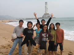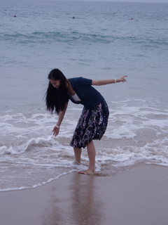 到達(dá)三亞的第一天,我們就游覽了佛教文化旅游區(qū)——南山文化旅游區(qū),108米高的海上觀音圣像巍然屹立在南海之濱,仰望圣像,清新的海風(fēng)輕輕地拂過臉龐,盡情享受著佛教文化圣地的這份獨(dú)有的清凈,耳邊只有那調(diào)皮的浪花與巖石的嬉戲聲。第二天我們又游覽的亞龍灣,我們騎著租來的自行車,在亞龍灣的公路上灑滿美德人的歡笑,亞龍灣的風(fēng)景實(shí)在是太美了,碧海、浪花、沙灘、椰林、草地……一切的一切都是那么的美好,我們不停的拍照,只想時(shí)間停留在這一刻。