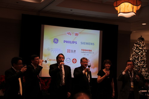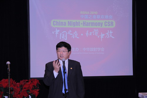 學(xué)會主任委員郭啟勇教授、候任主任委員馮曉源教授、各位副主任委員,以及GE、西門子、飛利浦、銳柯等公司的中國區(qū)領(lǐng)導(dǎo)悉數(shù)出席,中國之夜共吸引了與會專家、公司代表以及在美華人放射專家等400余人參與。致辭中,郭啟勇院長表示,隨著國家經(jīng)濟(jì)的發(fā)展,醫(yī)療需求的增加,中國的醫(yī)療器械市場吸引了世界各地的廣泛關(guān)注。而我們的醫(yī)療科技水平亦不斷攀升發(fā)展,RSNA收錄的中國人論文,從無到有,到今年的176篇,代表著中國影像醫(yī)師在RSNA這個世界學(xué)術(shù)舞臺上的話語權(quán)不斷增強(qiáng),我們已經(jīng)從旁觀者變成輕舞飛揚(yáng)的表演者。