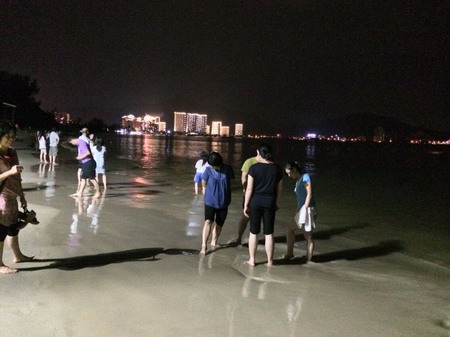 經(jīng)過近三小時的車程,我們順利抵達巽寮灣鳳池島度假村。海景房配超大陽臺,視野開闊,無敵海景一覽無余。晚上,饑腸轆轆的我們享用了當(dāng)?shù)氐霓r(nóng)家菜,盤盤掃個精光。晚飯后,夜幕下,大伙漫步酒店私家沙灘,聊天、談心、吹海風(fēng)、沖海浪、抓螃蟹、撿貝殼,涼風(fēng)習(xí)習(xí),十分愜意,久久不愿離去。
