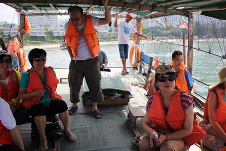 14日用畢早餐,我們分乘兩條漁船出海捕魚,雖然收獲甚微,大家亦興致勃勃。又乘坐快艇環(huán)游海鷗島和其它島嶼,在湛藍(lán)的天空下,在碧波蕩漾的海面上,在明媚陽光的親撫下,享受與大自然親近的無窮樂趣,身心的緊張和疲憊得到了徹底的放松和緩解。