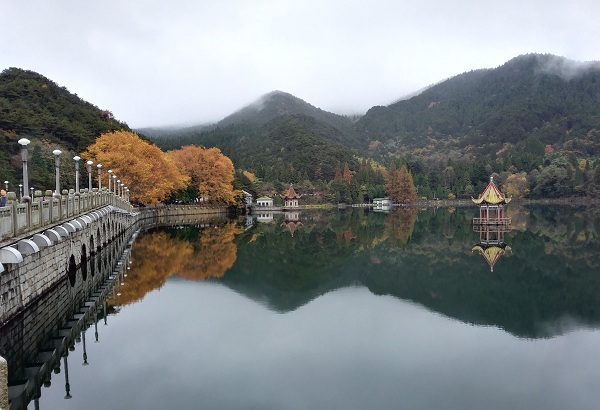 《廬山戀》電影里的男女主人公相約游泳的盧林湖,湖面平靜,深秋的早上,湖面突然升起一團白霧,逐漸向我們逼近,又突然消散,讓人感覺神秘而仙氣十足。如琴湖是廬山區(qū)牯嶺街的一處街心公園,因湖面形如樂器小提琴,所以故名"如琴湖"。如琴湖座落西谷,峰嶺圍抱,森林蓊蔚,環(huán)境幽雅。湖心立島,島內有許多人工飼養(yǎng)的孔雀,所以名為孔雀島,曲橋連接,上綴水榭,形成綠水青山,相映成趣,臨立島上縱覽四周妙處橫生。